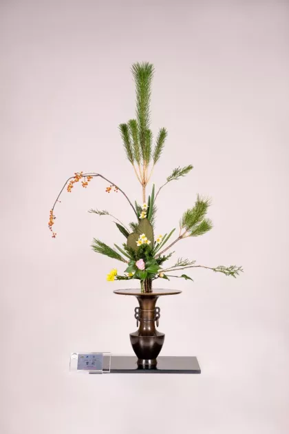 立花는 나무로 산을, 풀로 물을 표현하는데,7~9개의 나뭇가지의 역동적인 선이나 형태를 활용해 밝고 경쾌한 표현을 만들어내는 것이 특징이다.